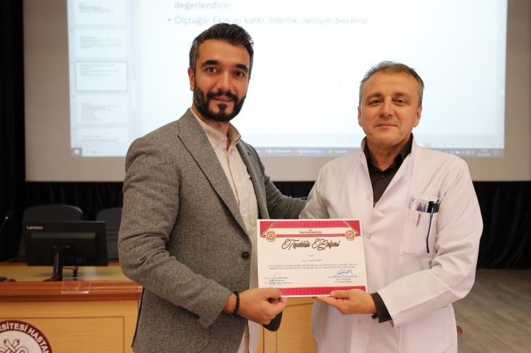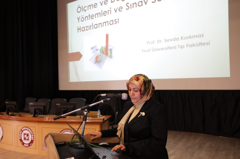 Fırat Üniversitesi Tıp Fakültesi Dekan Yardımcısı Prof. Dr. Sevda KORKMAZ, 2024_2025 Eğitim Öğretim döneminde Ölçme ve Değerlendirme yöntemleri, Fakültemizde uygulanan Eğitim modelleri ve 2025_2026 Eğitim döneminde yapılması planlanan eğitim faaliyetleri hakkında bigilendirme konuşması yaptı. Devamında Eğitim Fakültesinden Doç. Dr. Melih DİKMEN sınav yöntemleri ve soru hazırlama aşamasında dikkat edilmesi gereken konular ile ilgili sunumunu gerçekleştirdi. Konferansın sonunda Doç. Dr. Melih DİKMEN Hocaya Teşekkür belgesi taktim edildi.